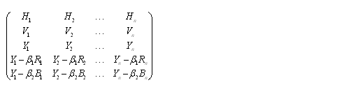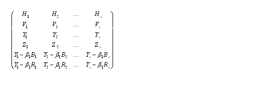 現(xiàn)行的彩色電視系統(tǒng)中,由行向量H,幀向量V,亮度向量Y組成的,表達(dá)彩色信息的是由紅向量R,綠向量G,蘭向量B的三維線性空間。也可用以下的矩陣來(lái)表示: