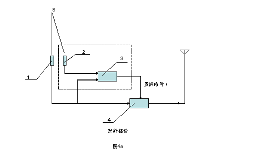 圖4a,新型立體電視系統(tǒng)的發(fā)射部份的框圖。其中虛線部份,即是在普通電視系統(tǒng)基礎(chǔ)上新增的部份。
