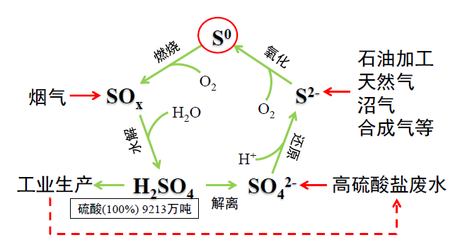 化學(xué)原料與制品、石化、醫(yī)藥、農(nóng)藥、染料化工、焦化、造紙等生產(chǎn)過程,硫及其硫的不同形式產(chǎn)物被廣泛應(yīng)用,目前我國每年消耗硫酸超過1億噸,硫酸鹽廢水排放體量巨大,工業(yè)生產(chǎn)過程每年產(chǎn)生大量的SO2,這些物質(zhì)最終以不同的形式硫進(jìn)入生產(chǎn)廢水和固廢中。其中含硫廢水是最主要的硫污染源,這類工業(yè)廢水有機污染物濃度高、產(chǎn)生量大、污染物組分復(fù)雜,廢水中含有多種難降解化學(xué)物質(zhì)和毒性物質(zhì),廢水難生化降解。