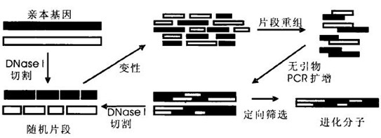 結(jié)構(gòu)改變?cè)醋园被嵋患?jí)序列的改變,氨基酸一級(jí)序列的改變?cè)醋云浠蛐蛄械母淖?,因此可以在DNA組成上做工作獲取進(jìn)化的新的功能分子。DNA組成改變的工作就是我們熟悉的“突變”。因此,隨機(jī)突變和定向篩選組成定向進(jìn)化兩大關(guān)鍵技術(shù),可以幫助我們獲取需要的進(jìn)化分子,這個(gè)過程使幾百萬年、幾億年的自然進(jìn)化過程縮短到數(shù)年、數(shù)月、甚至數(shù)天,以滿足人們的特殊需要。