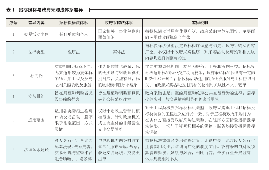二、招標(biāo)投標(biāo)與政府采購法律體系差異